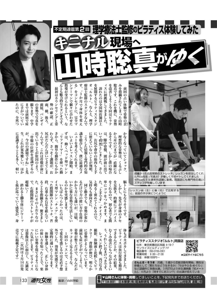 このたび、週刊誌「週刊女性」(2025年4月7日・14日合併号、133ページ)にて、ピラティススタジオlulutoの取材記事が掲載されました。